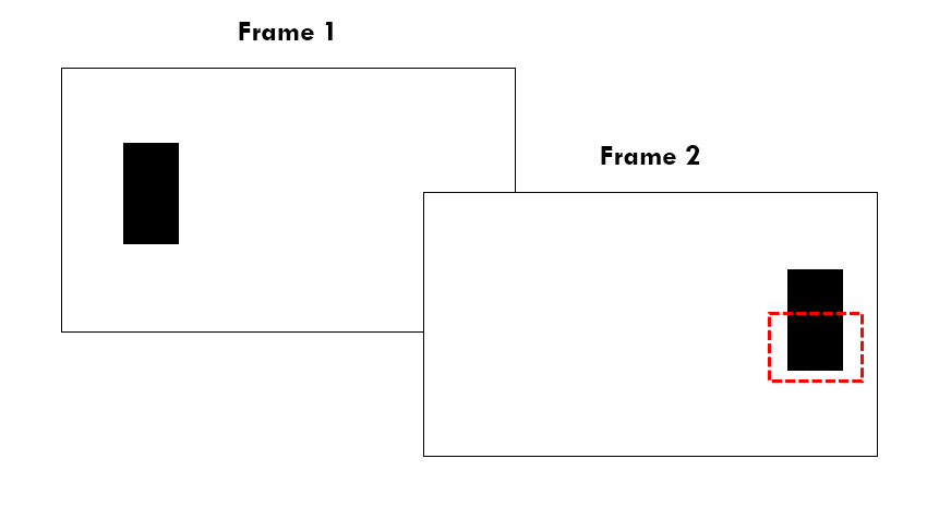 - Interprediction: I can find the matching block in frame 1. It appears to have moved by a distance of approximately the frame’s width. This movement gives us the motion vector.