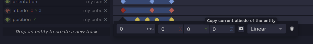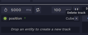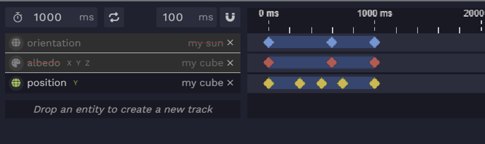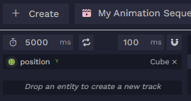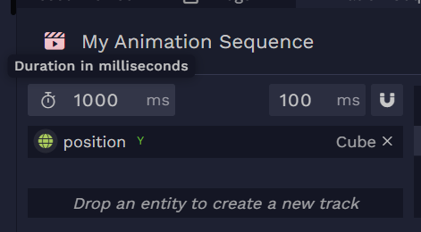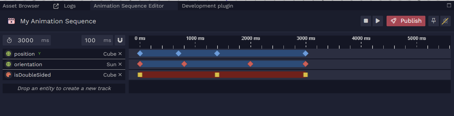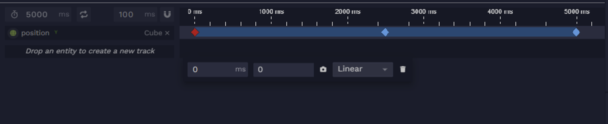 In the example below, at time 1000ms, the animation sequence will set the entity’s position to the value specified by key B.