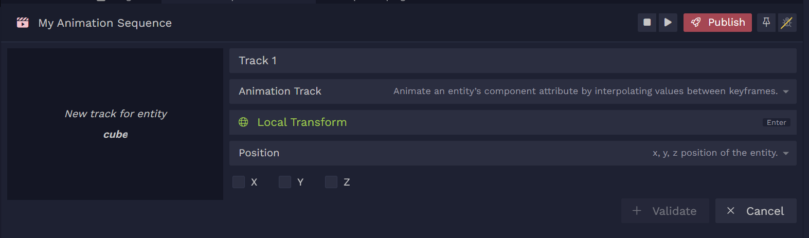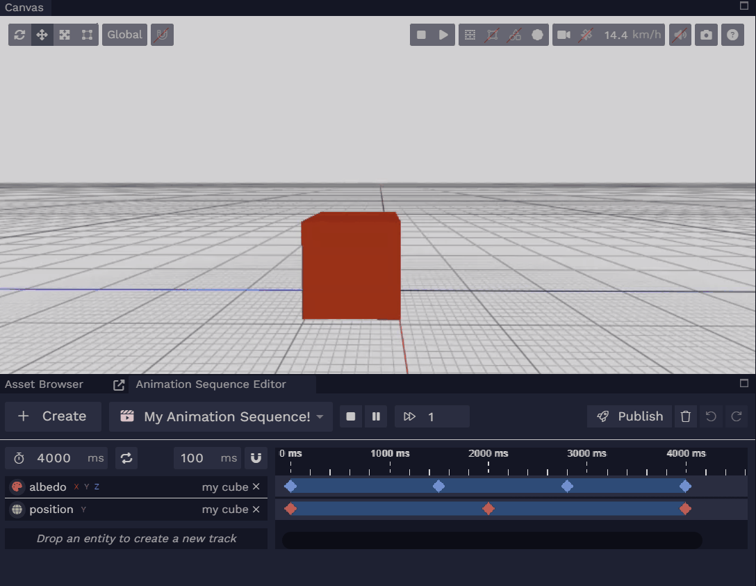 The Animation Sequence asset allows you to create entity-based animations directly in the Editor. More specifically, you can animate the component data of entities.