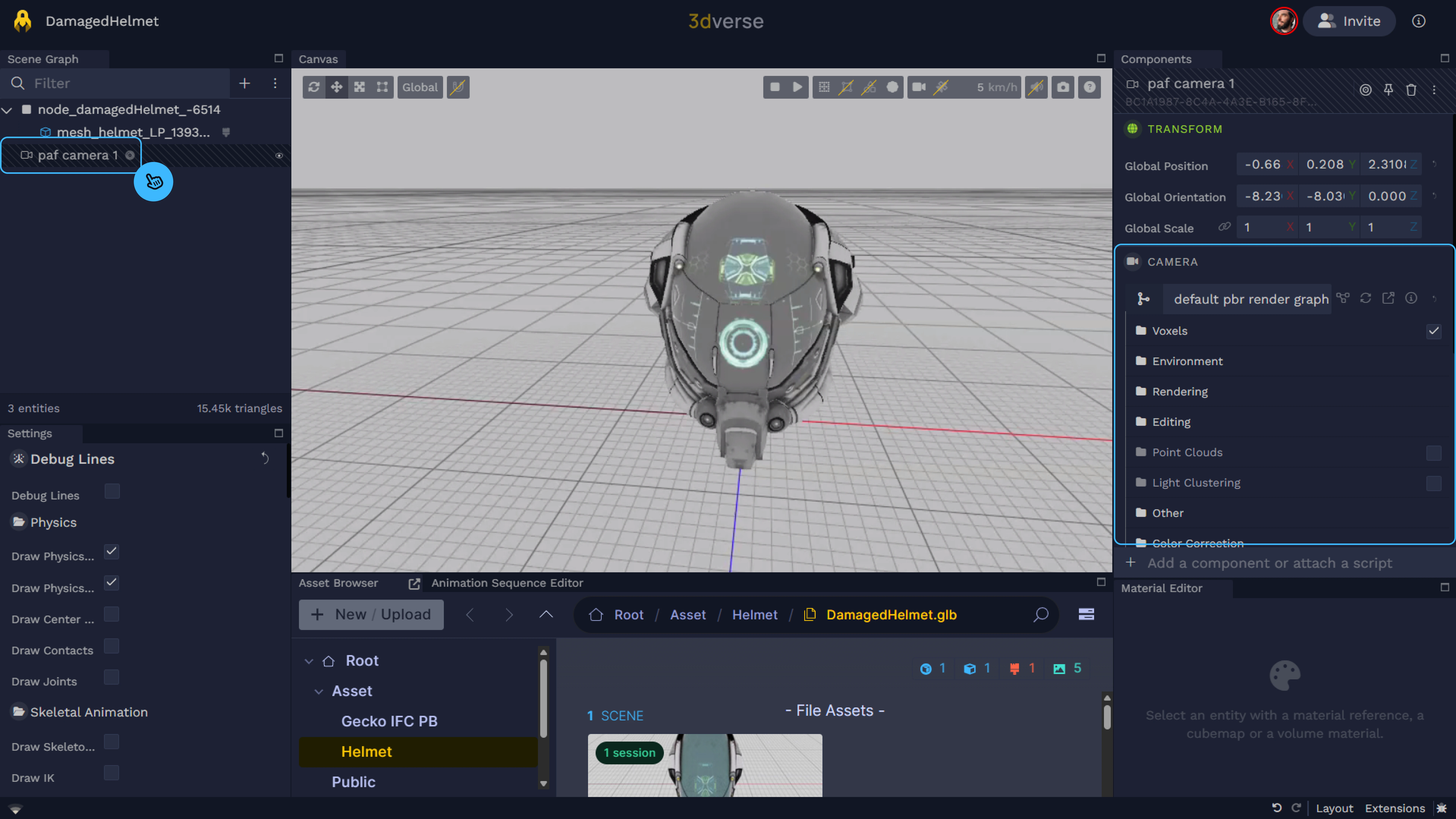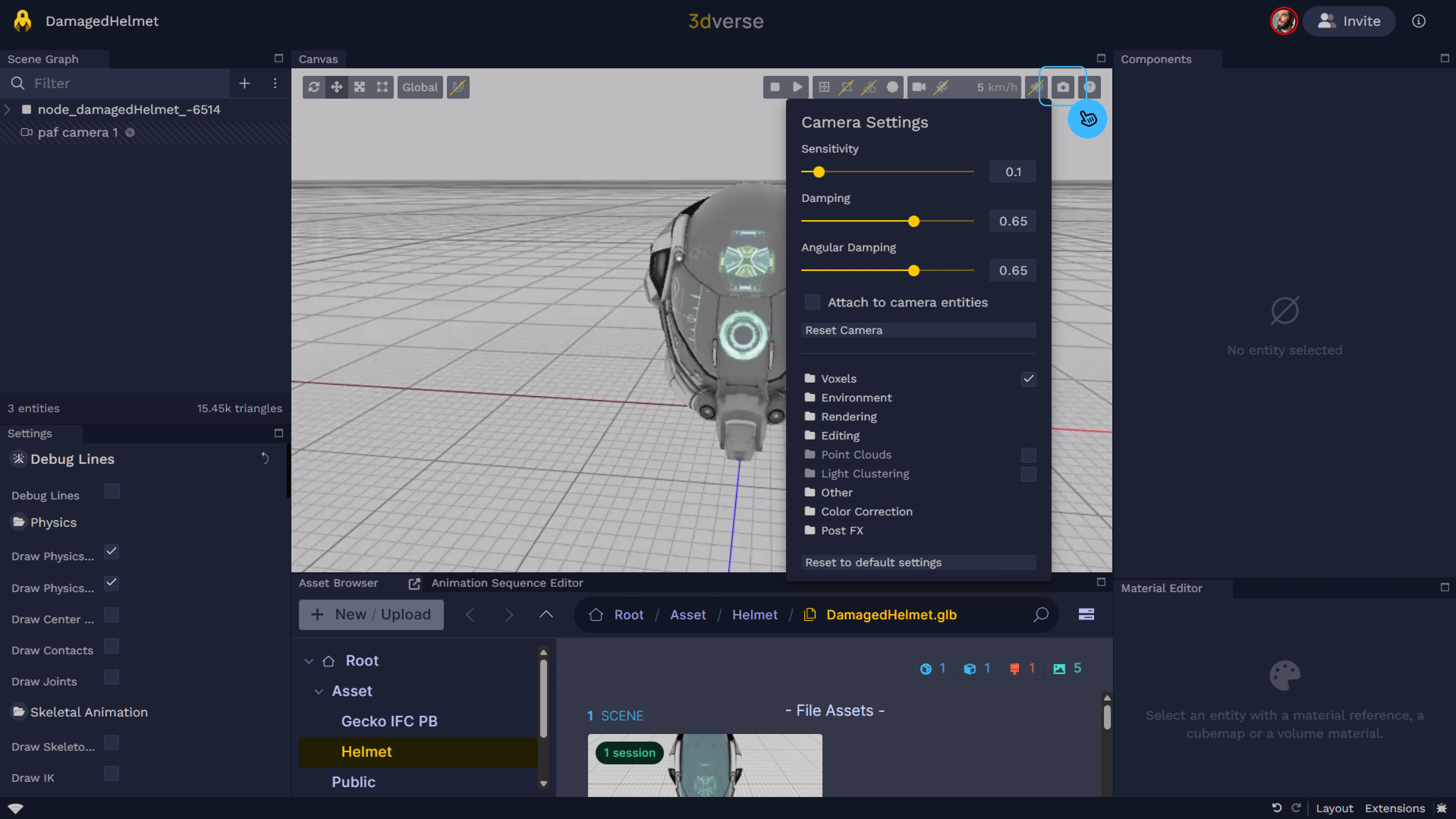 In the general settings of your 3dverse scene, it includes a default camera setting. When a user joins the scene, a camera entity is automatically created for them using these defaults camera settings. You can then adjust your user camera’s settings to control your view and environment.